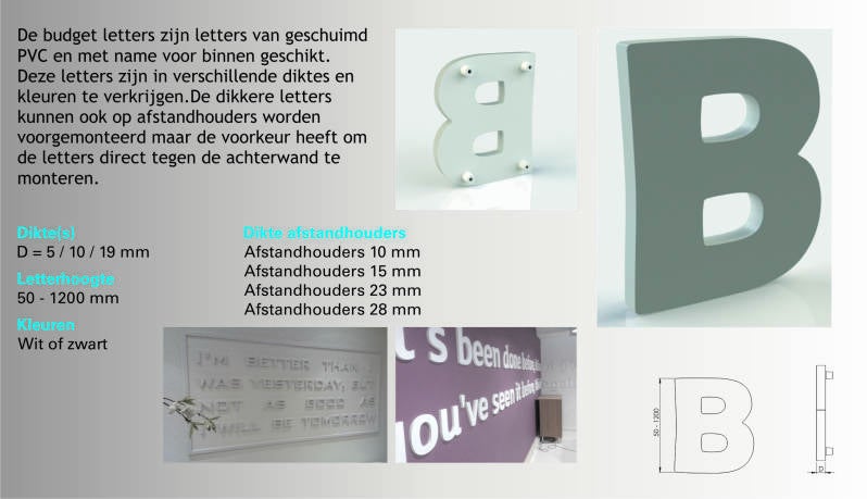 Budgetletters zijn met name zeer geschikt om binnen te monteren. En zijn voor kortdurende presentaties ook buiten te gebruiken.